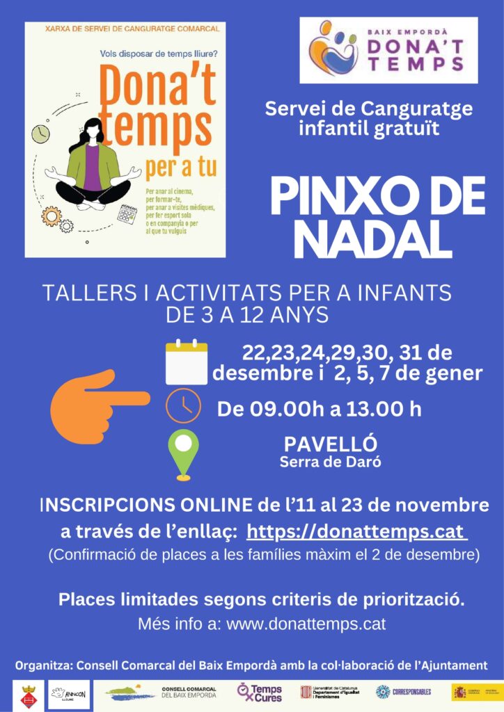 Inscripcions online de l’11 al 23 de novembre a través de l’enllaç http://donattemps.cat/